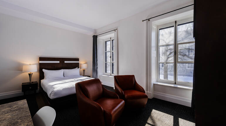 Avec un mur de brique ou de pierre, cette chambre accueillante possède un charme ancestral. Elle vous permettra de relaxer en contemplant la rue Sainte-Anne, artère typique du Vieux-Québec.